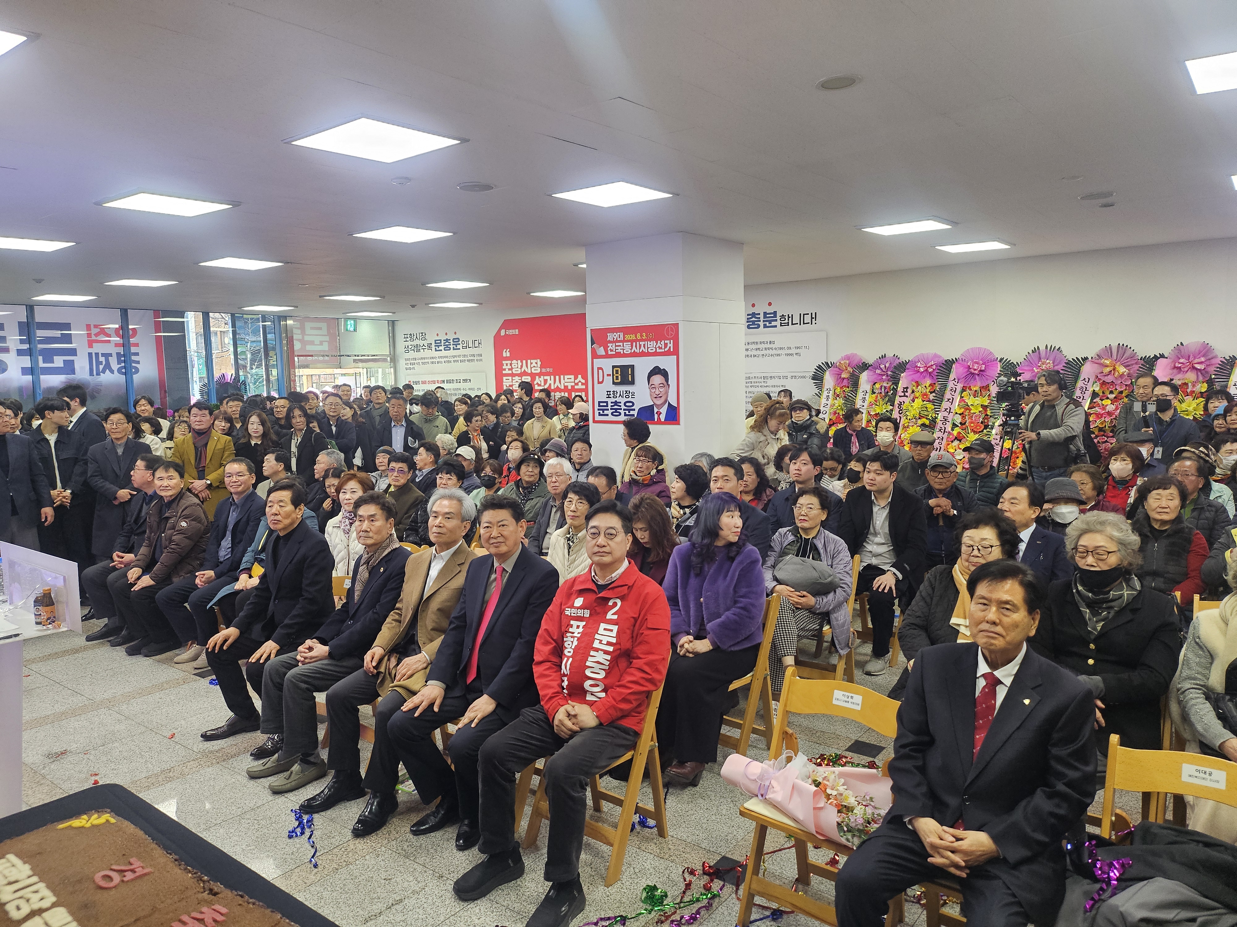 문충운 선거사무소 개소식 대성황 이뤄“포항 신산업이 대한민국 미래 선도하게 할 것” 이상휘·나경원·양향자, 축사·축전·영상으로 축하 전해14일(토) 오후 현판 제막식을 시작으로 열린 문충운 국민의힘 포항시장 예비후보 선거사무소 개소식이 대성황을 이루면서 향후 선거 지형에 어떤 변화로 이어질지 지역 정가의 관심이 집중되고 있다. 이날 개소식은 이상휘 국회의원을 비롯해 한국해운조합 문충도 회장과 이채익 이사장, 장일 장풍 2030 중앙회장, 이대공 애린복지재단 이사장, 이성환 포항뿌리회 초대회장, 정찬영 국가원로회의 정책위원장, 덕화 스님 외 포항사암연합회 임원진 등 내외귀빈과 당원, 시민 등 2,000여 명이 참석한 가운데 뜨거운 열기와 박수 속에 진행되어 주변 행인들의 눈길을 끌기도 했다. 문충운 예비후보는 인사말에서 “포스코가 대한민국의 산업화를 이끌었듯이 이제는 문충운이 설계하는 포항의 신산업 지도가 대한민국의 미래를 선도하게 만들겠다”며 “이차전지·수소·바이오·신소재 산업이 포항의 미래 100년 먹거리가 되도록 육성하고, 포항의 모든 행정과 산업에 AI 디지털 날개를 달아 지역의 경쟁력을 확보하겠다”고 밝혔다. 이어 “도시 구조를 재설계해 원도심을 반드시 부활시키고, 청년들이 포항을 떠나지 않고 꿈을 펼치며 머물 수 있도록 청년 벤처 생태계 구축과 청년 일자리 확보에 매진하겠다”며 “오늘 개소한 이곳이 ‘리셋 포항, 포항 대전환’을 바라는 시민들이 용광로처럼 힘을 분출하는 거점이 될 것”이라고 강조했다. 한편, 개소식에 참석한 이상휘 국회의원(포항 남·울릉)은 축사를 통해, “문충운 예비후보는 공부를 많이 하여 식견이 넓고 능력도 출중한 포항이 꼭 필요로 하는 인재다”라며 선전을 당부했다. 또한 국민의힘 나경원(5선)·김정재 국회의원(포항 북) 양향자 최고위원과 정우택 전 국회부의장 등이 축전과 영상을 통해 문 예비후보의 선거사무소 개소식을 축하했다.